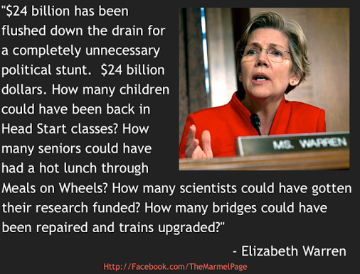 If the Tea Party was really as concerned about government waste as they claim to be, shouldn't they be having a conniption over this latest government shutdown? And shouldn't they be big supporters of Elizabeth Warren? Can you say hypocrites?